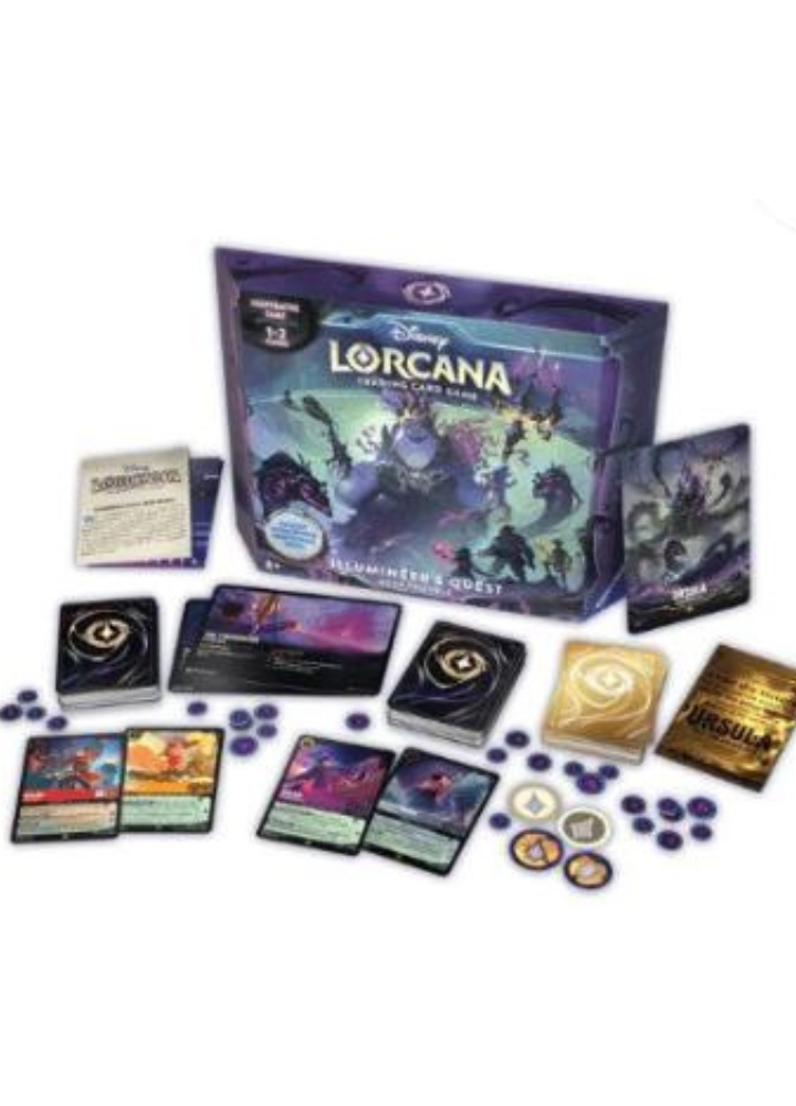 With the contents of this box, you can take on Ursula’s forces solo or cooperatively with a friend. You can also add up to two more friends with decks to your side, for a total of four players. Players can use any standard Disney Lorcana deck.
